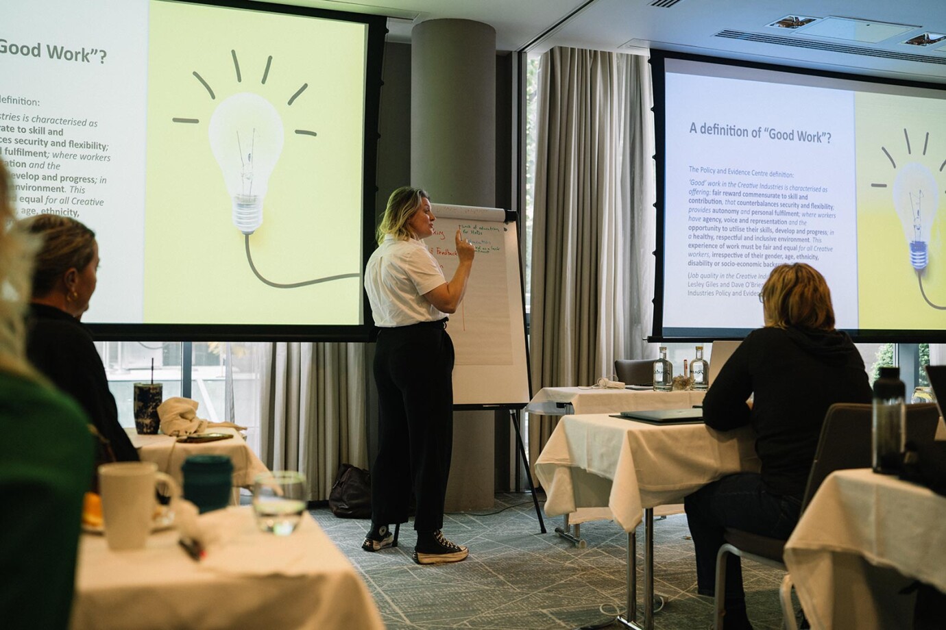 Through a blend of online information sessions, in-person networking, targeted training, and facilitated partner matching, participants gain a clear understanding of how job sharing can be implemented effectively in any role. The programme provides structured guidance for both employees and employers, including the development of joint professional profiles, workshops on communication and leadership, and tailored support for production teams integrating job-share partnerships.